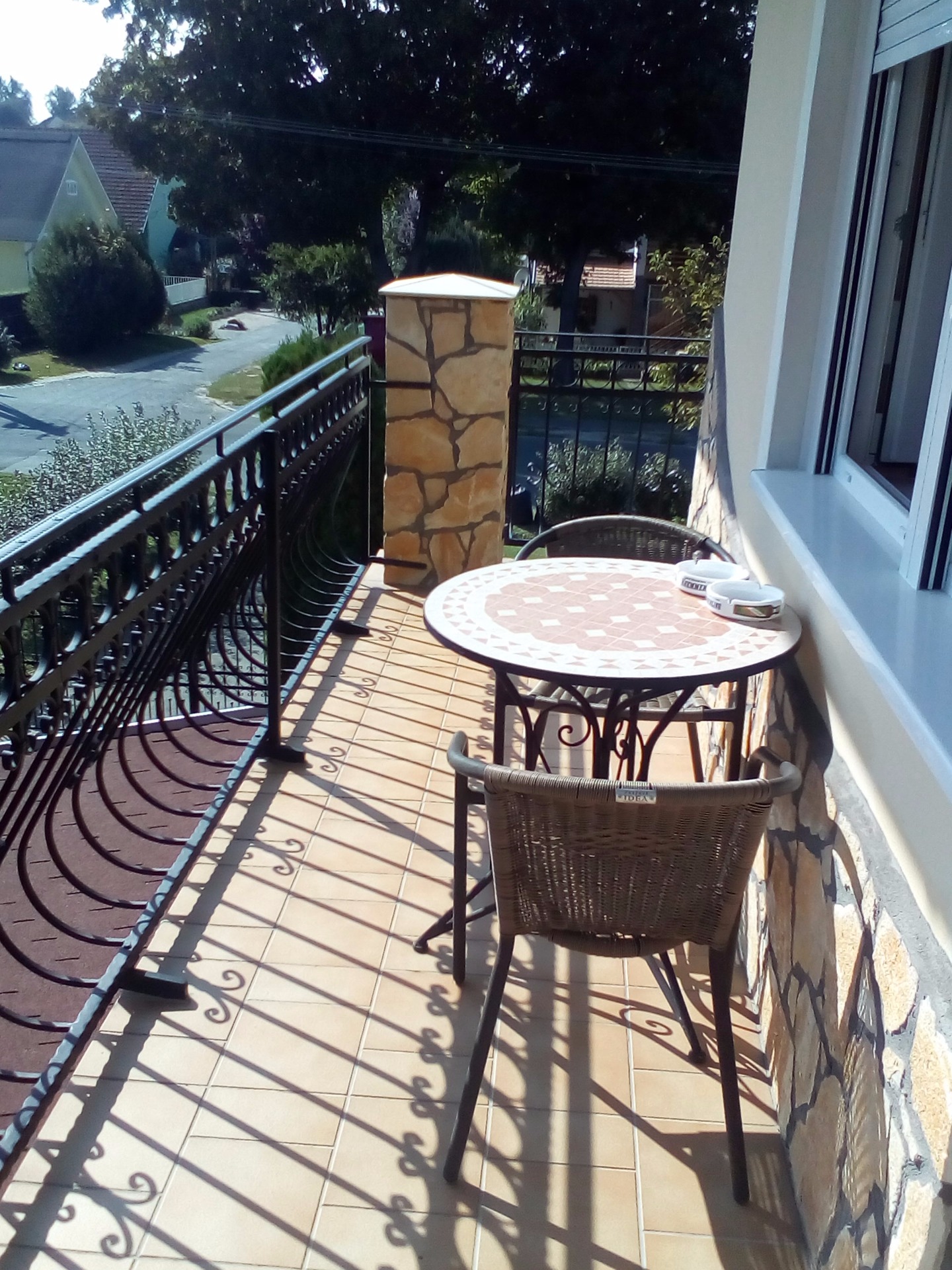 Vendégházunk emeleti apartmanja 8 személyes, három hálószobás . Két darab 3 ágyas szobával és egy darab 2 ágyas szobával. Tartozik hozzá még egy kisebb , teljesen felszerelt konyha, egy fürdőszoba ,hidromasszázs zuhanykabinnal. Egy wc. És egy nagy étkező, televízióval.Valamint egy nagy erkély ami minden hálóból elérhető.